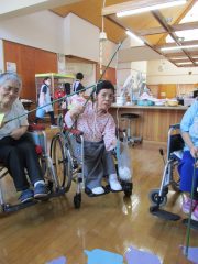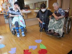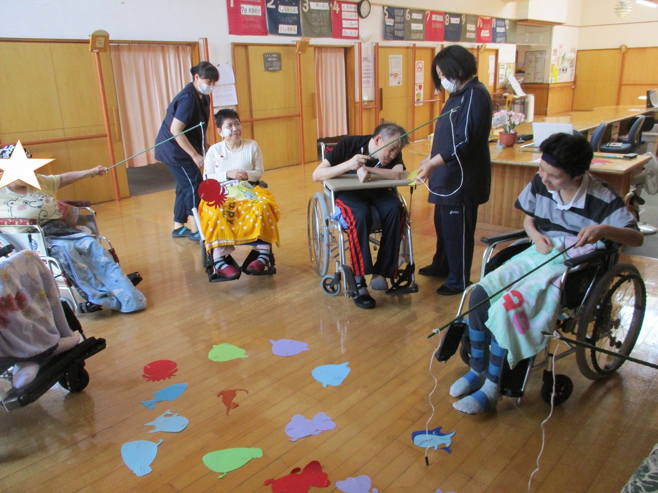 令和7年8月20日、日中活動にて魚釣りゲームを行いました。ご覧のように色彩豊かな魚は南国カラーをイメージしました。ちなみに製作した職員の個人的趣味で猫も魚に混じっています。可愛いのでよし。